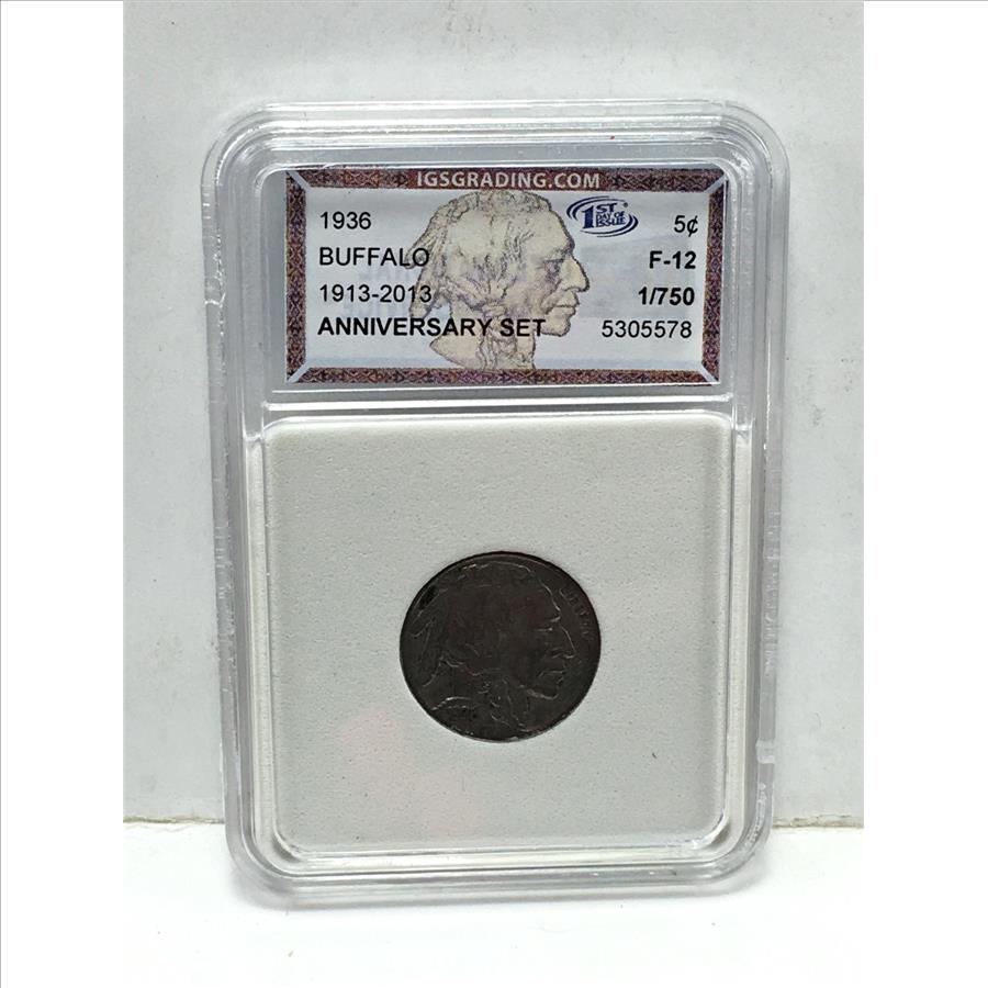 1936 Buffalo Nickel*Graded F12 by IGS Grading