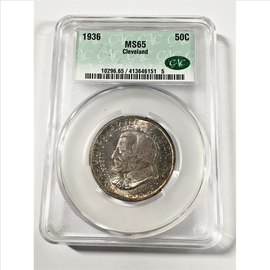 1936 Cleveland Centennial/Great Lakes Exposition Commemorative Silver Half Dollar*Graded MS65 by CAC Grading