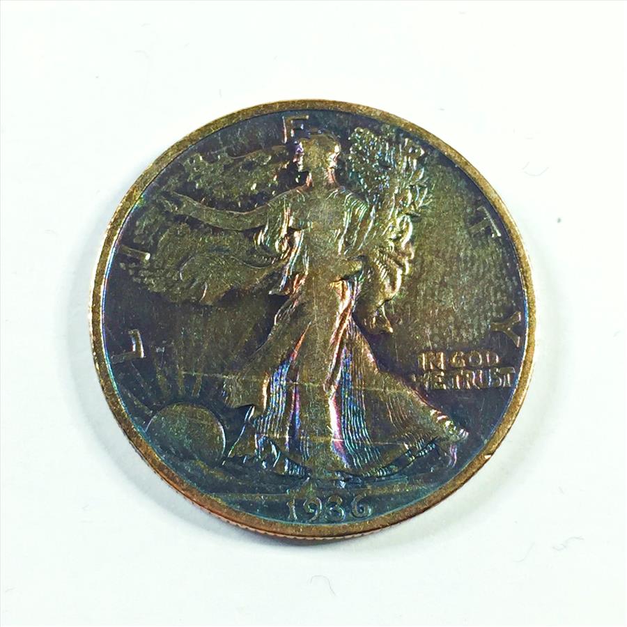 1936 Silver Walking Liberty Half Dollar*Beautiful Rainbow Tone!