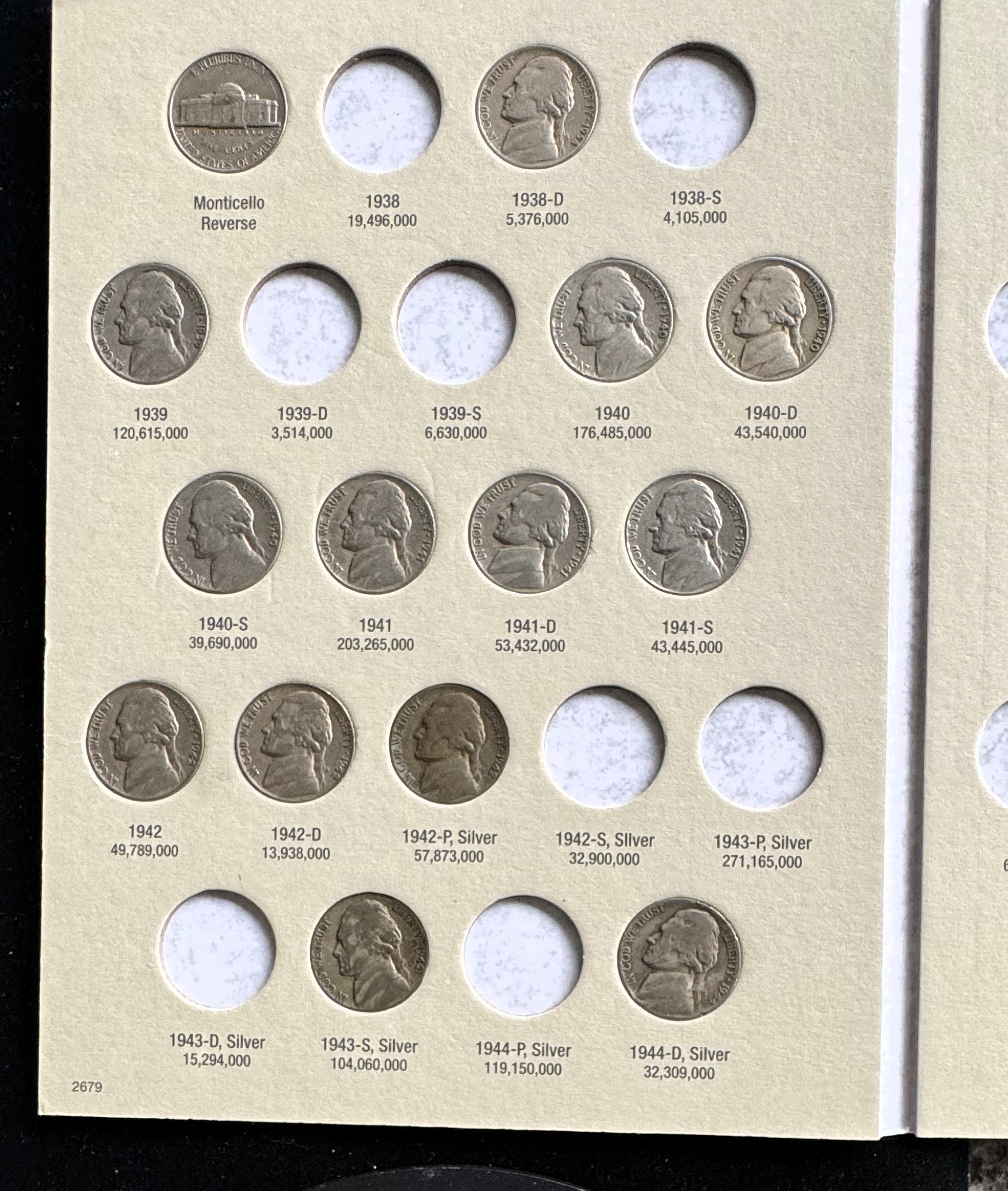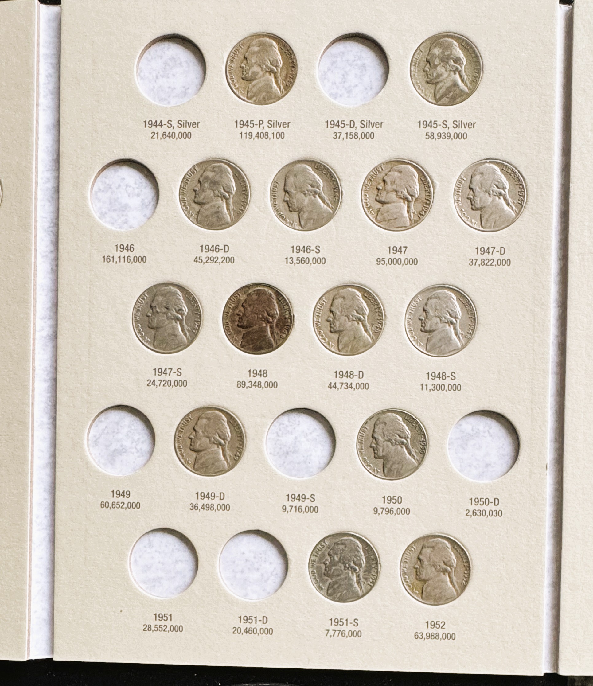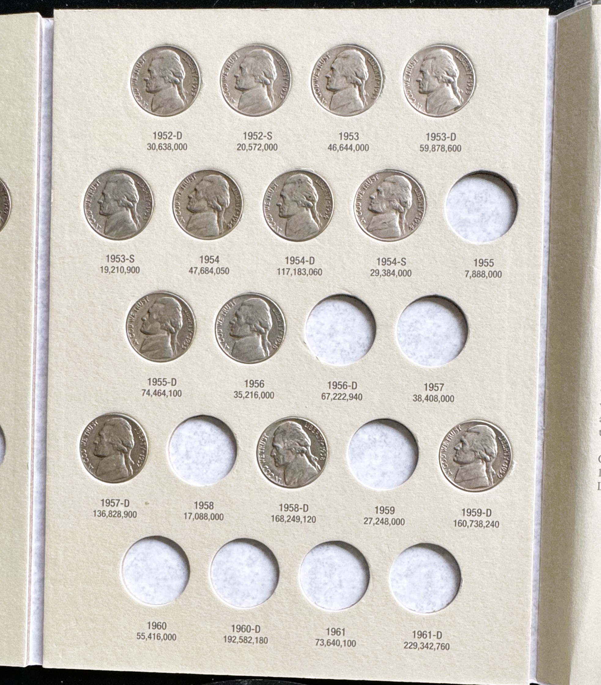1938-1961 JEFFERSON NICKEL INCOMPLETE COIN SET IN A WHITMAN COLLECTOR BOOK