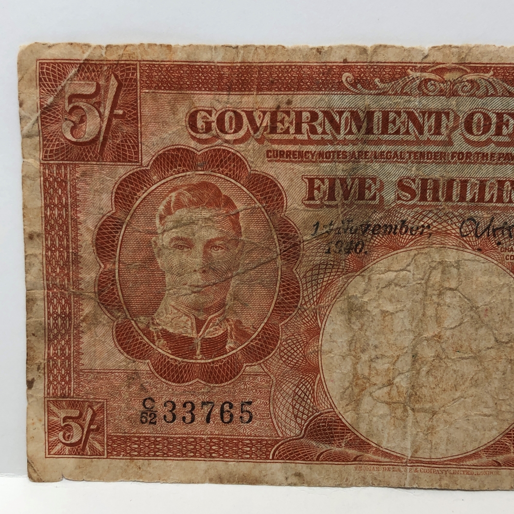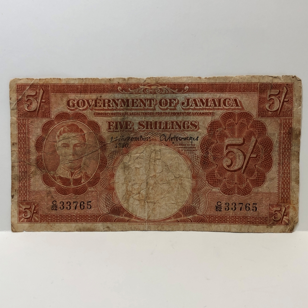 1940 Bank of Jamaica 5 Shillings *Rare Note in Protective Sleeve