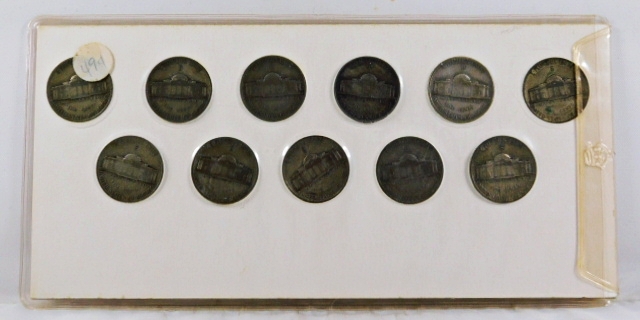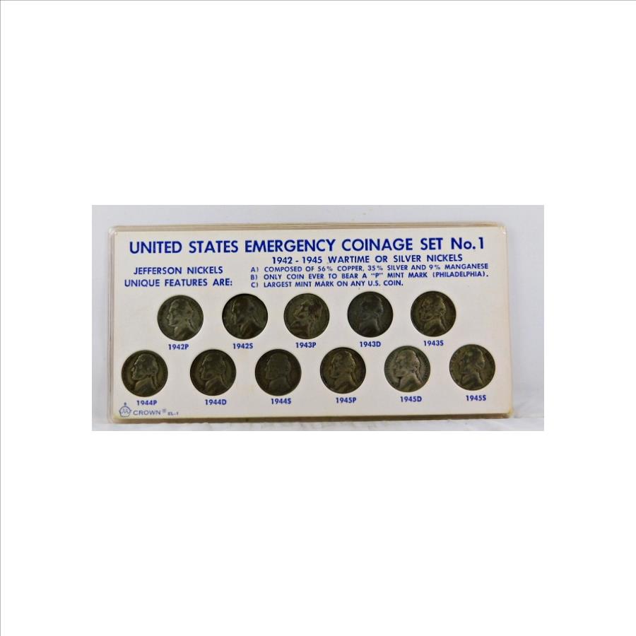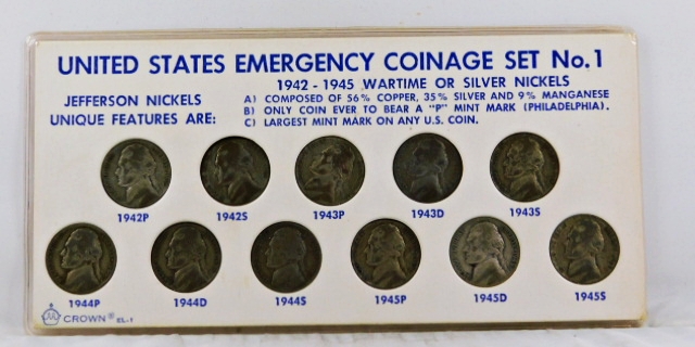 1942-1945 United States Emergency Coinage Set Nickels*35% Silver*Eleven Nickels*Encased in Cardboard/Plastic