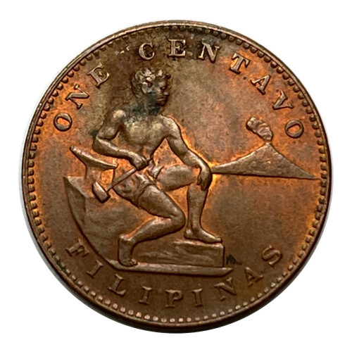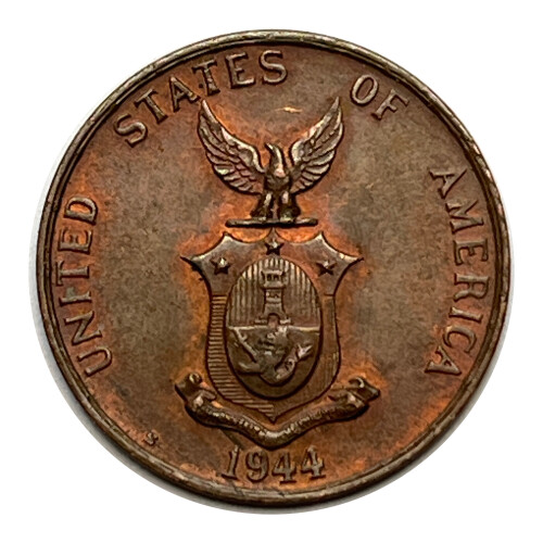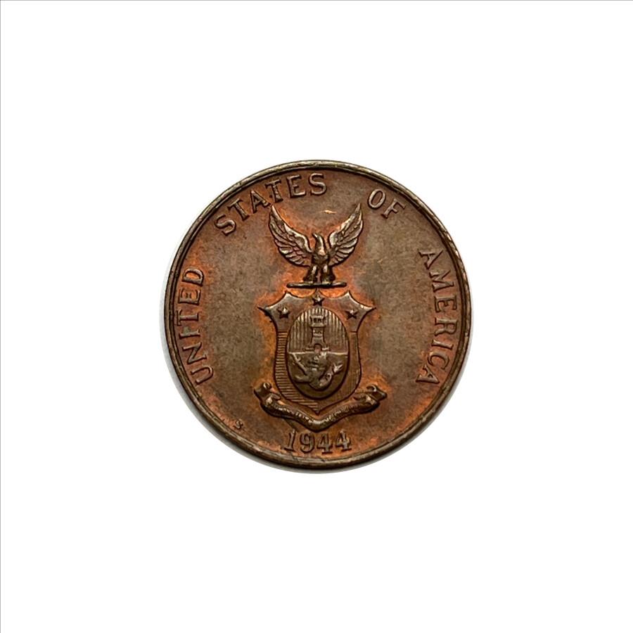 1944-S Philippines One Centavo Coin - Burnished Red & Orange Color