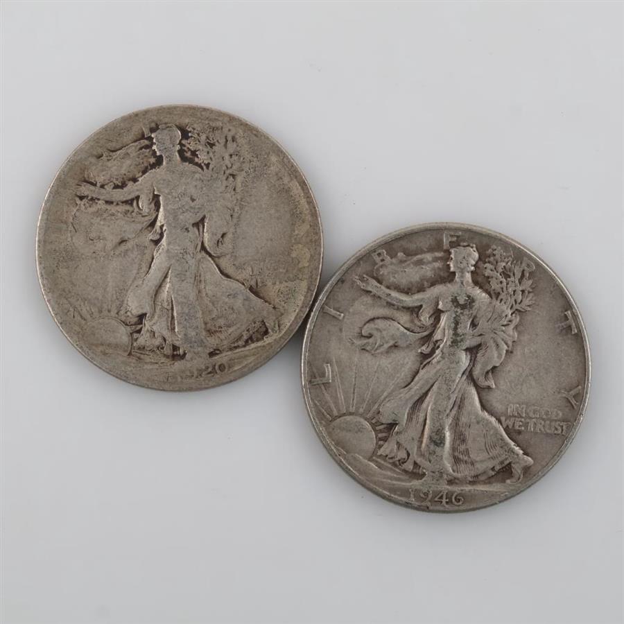 1946 & 1920 Walking Liberty Silver Half Dollar, 2 Pieces