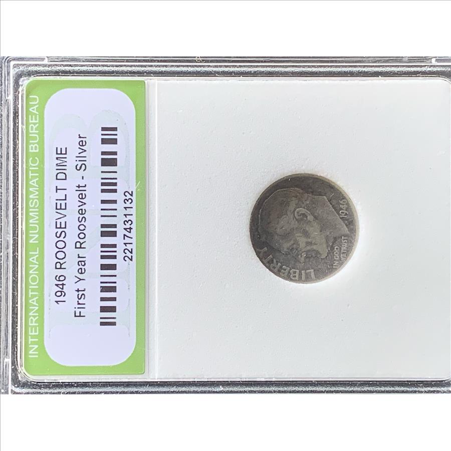 1946 FIRST YEAR ROOSEVELT SILVER DIME COIN IN THE SLAB