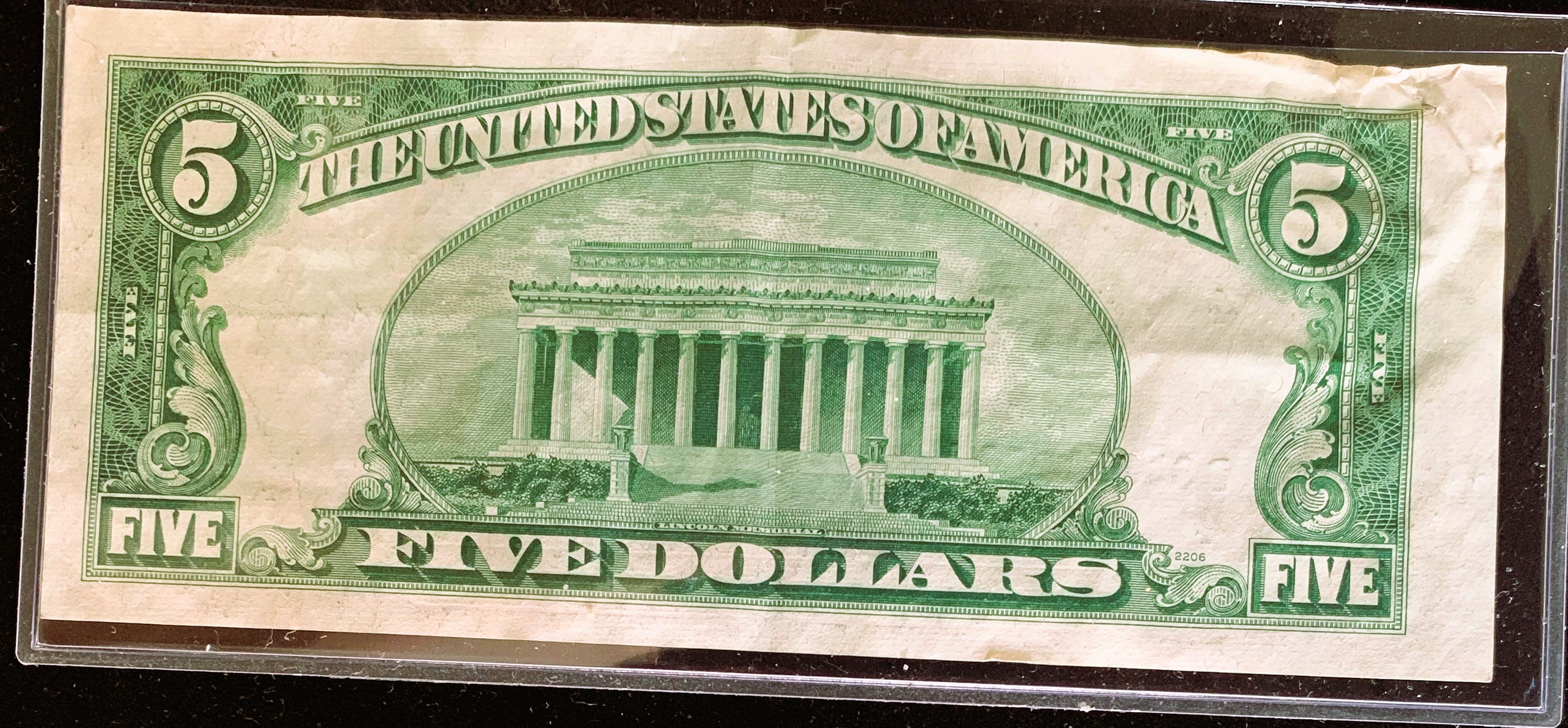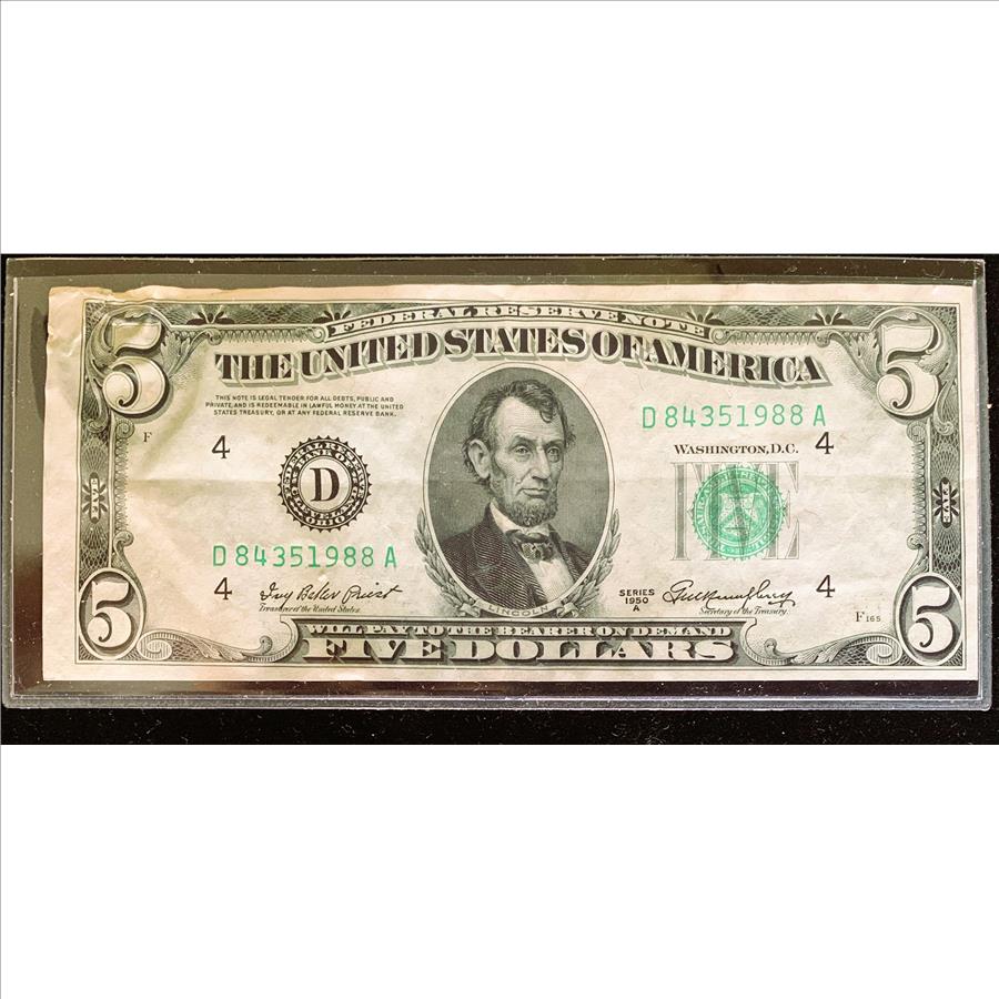 1950 A SERIES, $5 DOLLAR FEDERAL RESERVE NOTE, GREEN SEAL, CRISP IN SLEVE