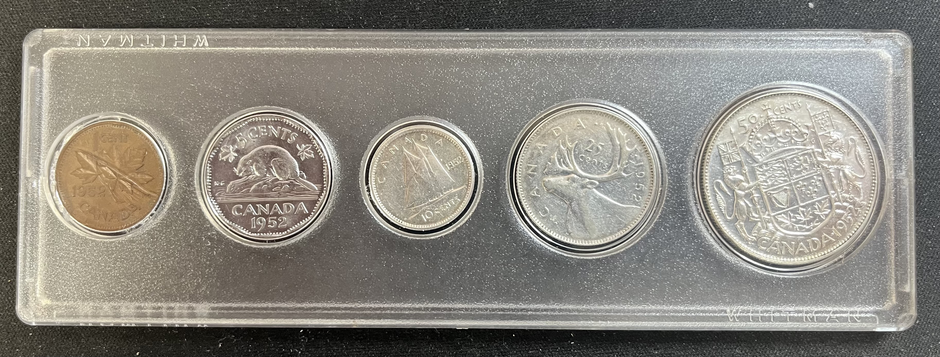 1952 Canada 5pc Coin Set Cent Thru Half Dollar
