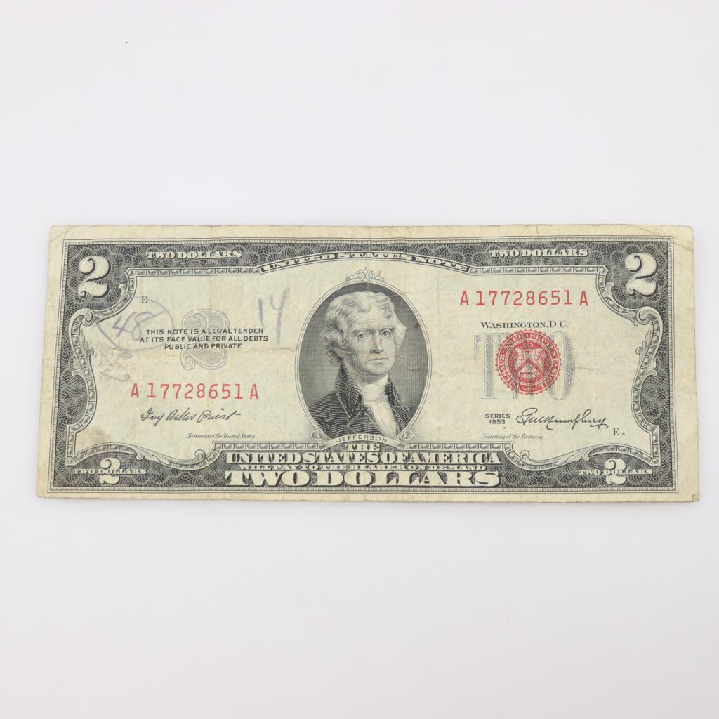 1953 US Two Dollar Federal Reserve Note Red Seal