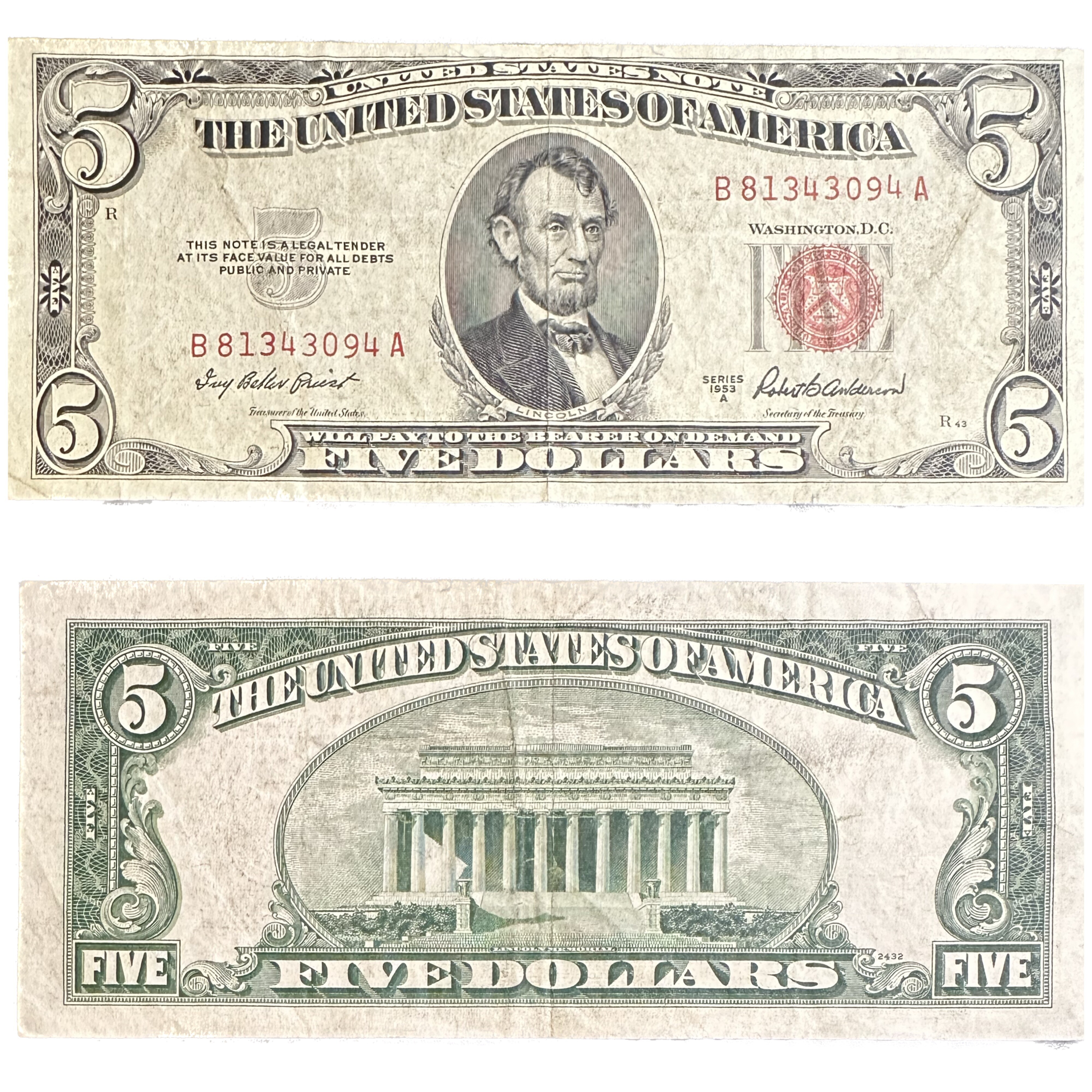 >1953A U.S. Five Dollars ($5) Bank Note - Red Seal