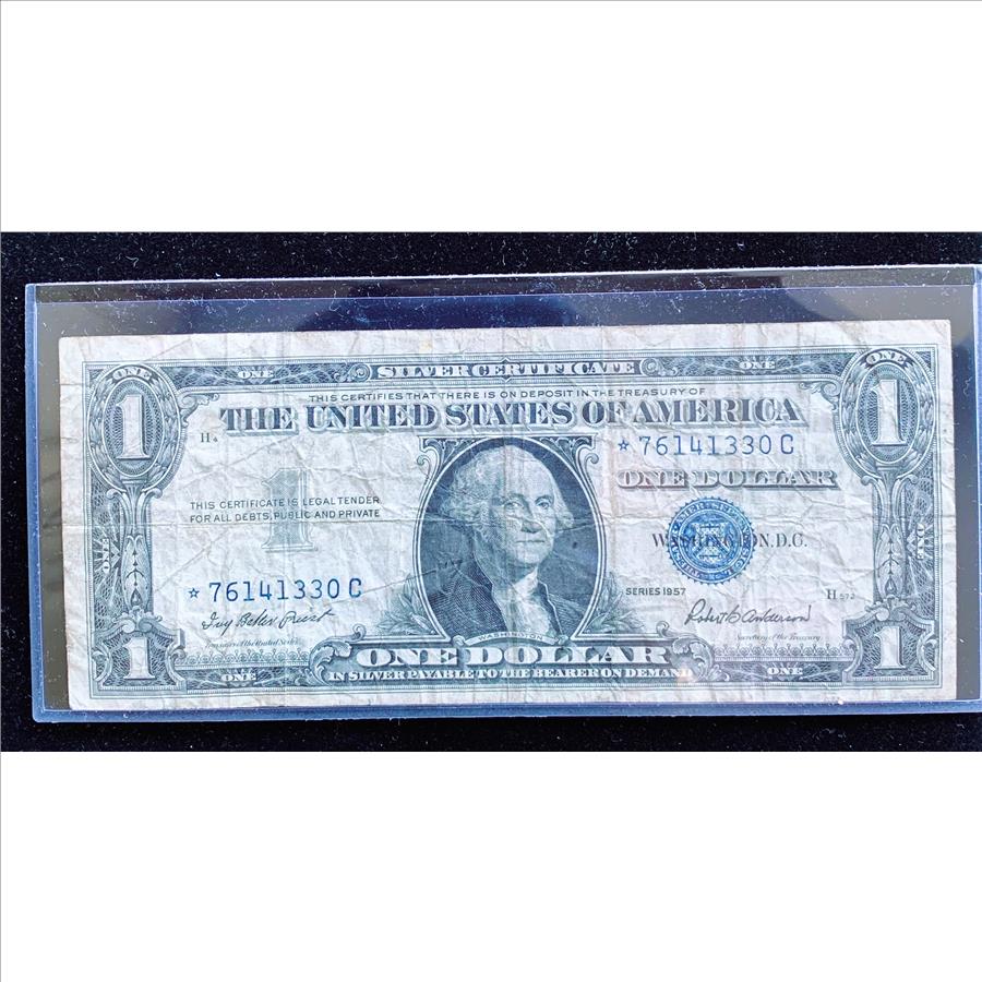 1957 SERIES $1 DOLLAR SILVER CERTIFICATE, RARE "STAR NOTE", BLUE SEAL IN SLEVE