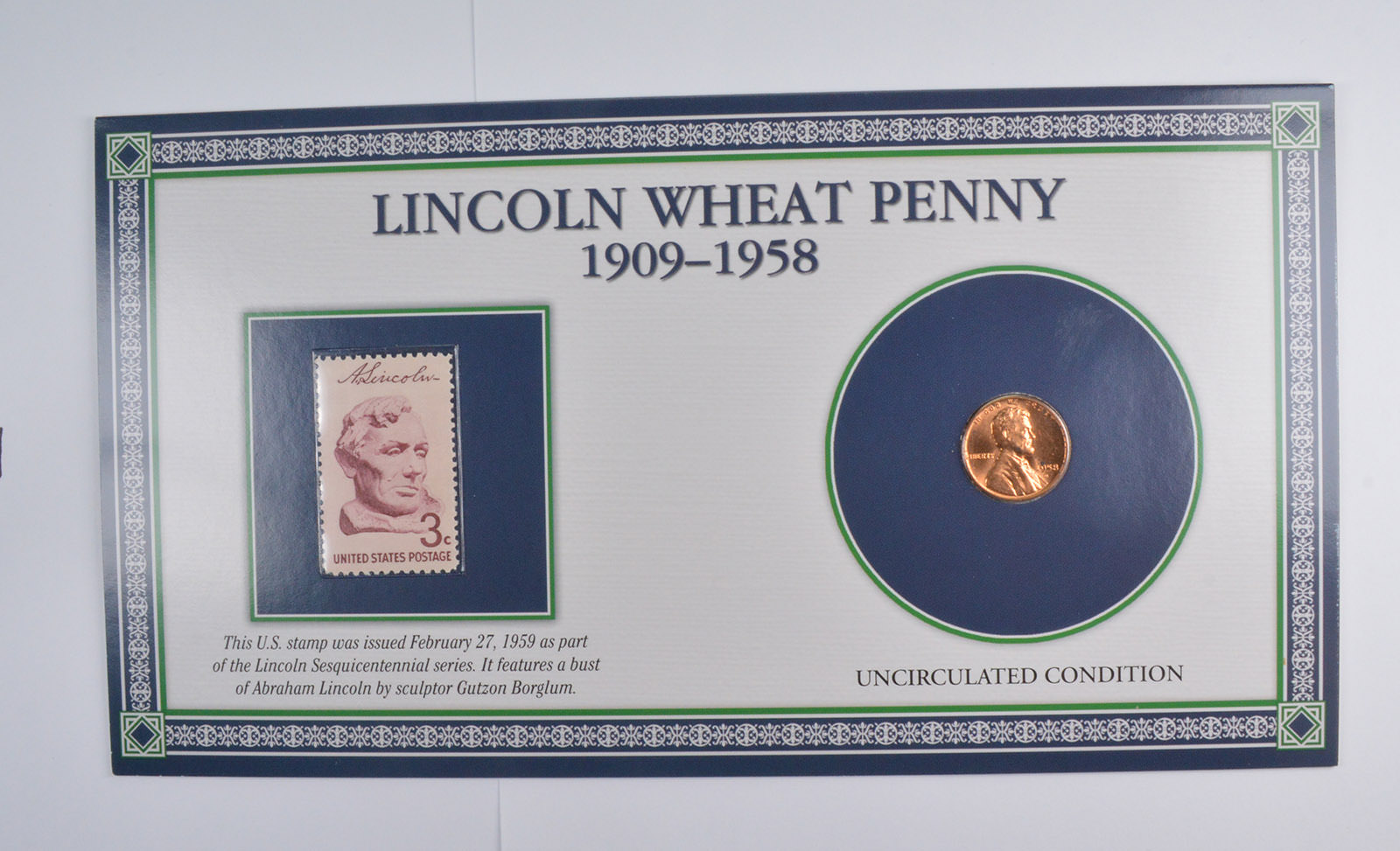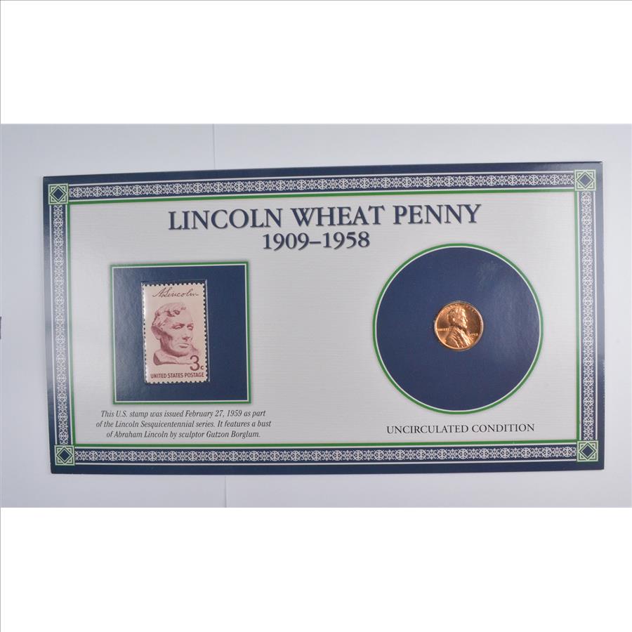 1958 Lincoln Wheat Penny With Commemorative Stamp - Beatuifully Displayed w/Story Board!