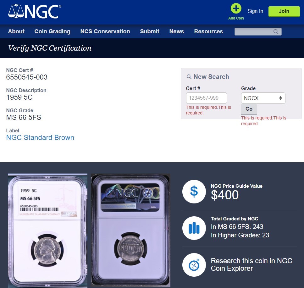 1959 Jefferson Nickel 5c - NGC MS66 5FS - FULL STEPS!! NGC Price Guide $400.00!!