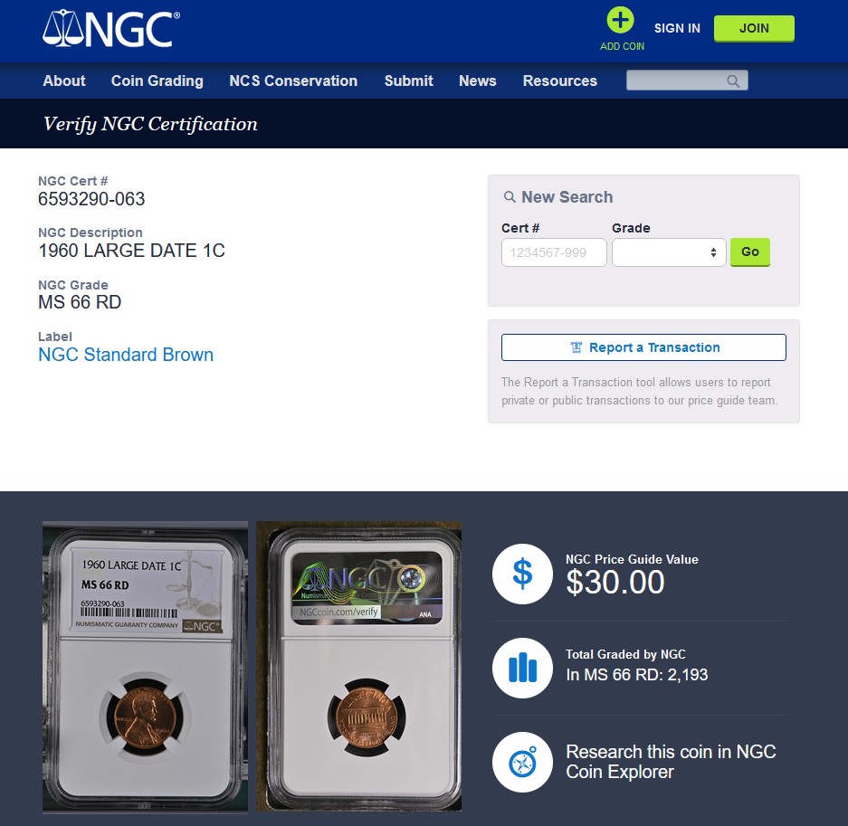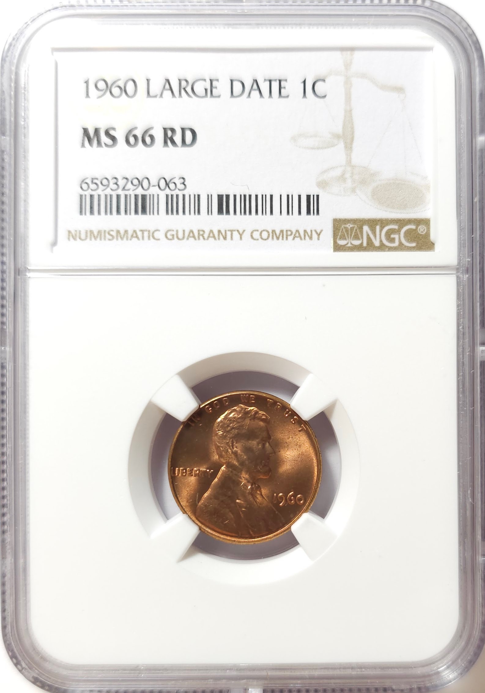 1960 Large Date Lincoln Memorial Cent 1c - NGC MS66 RD RED - NGC PRICE GUIDE $30.00