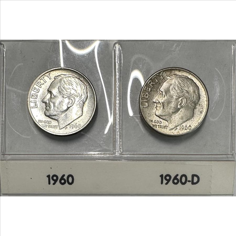 1960 (P&D) U.S. Silver Roosevelt Dimes - 2 Silver Coins!