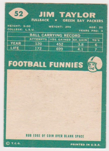 1960 Topps Jim Taylor #52 Card - HOF'er