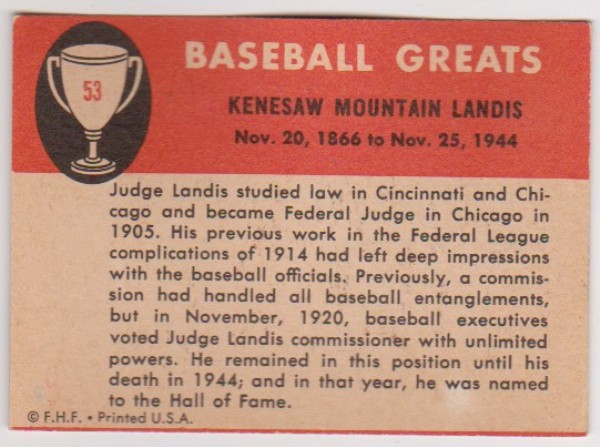 1961 Fleer Judge Kenesaw Mountain Landis #53 Card - HOFer
