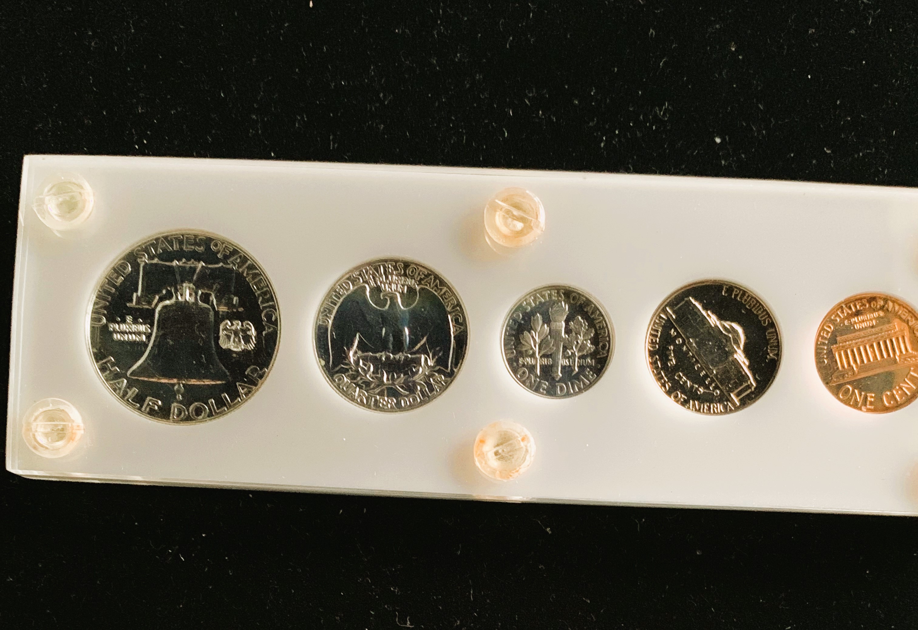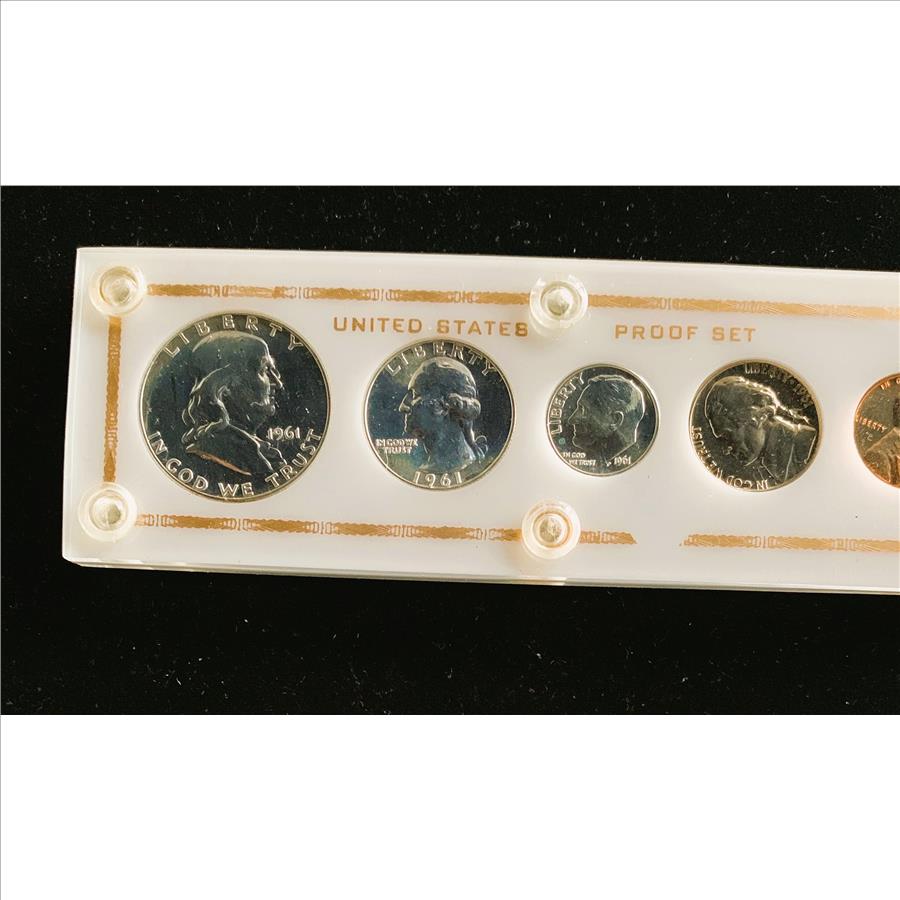 1961 U.S. PROOF HIGH GRADE SILVER COINS (5) RARE IN ORIG US MINT HARD SLAB, UNBLEMISHED BEAUTIES