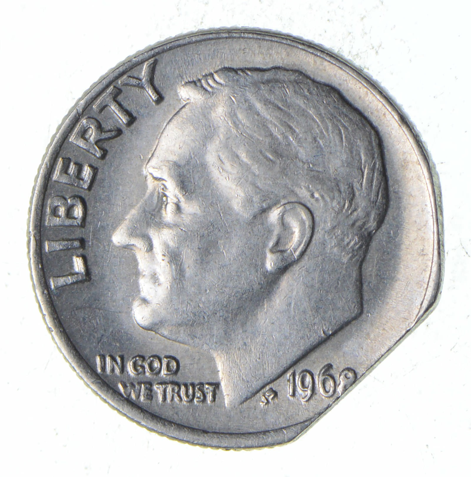 1962 Roosevelt Silver Dime - Mint Error: Clipped Planchet - US Coin