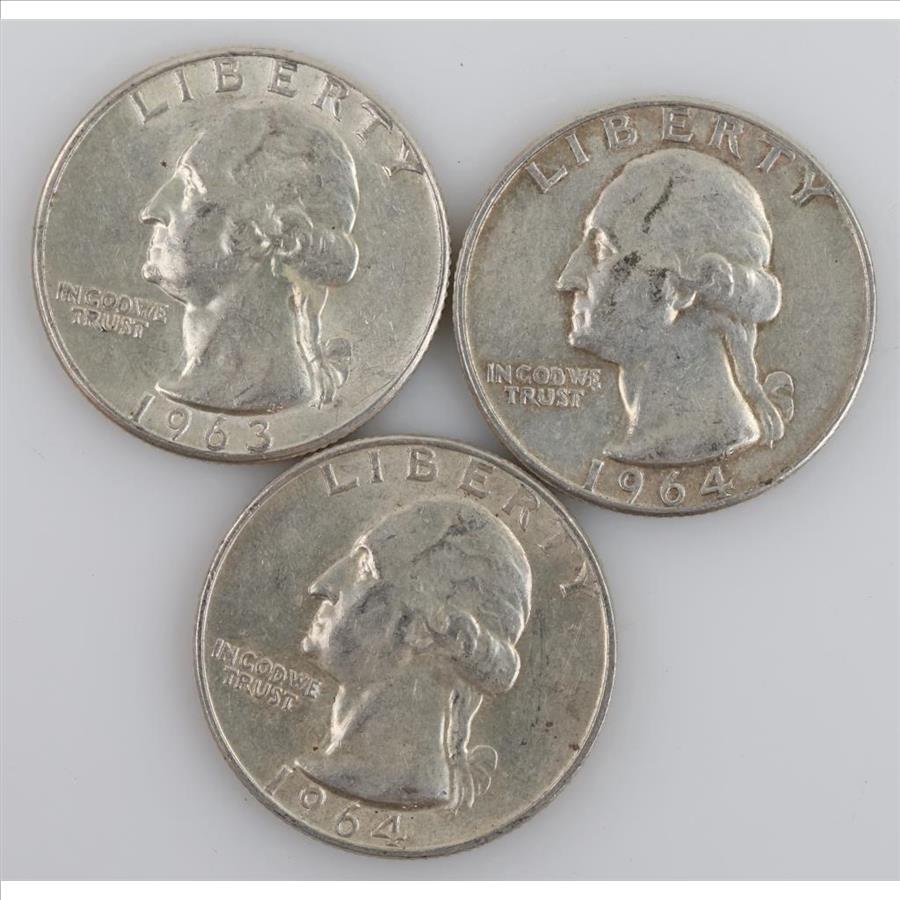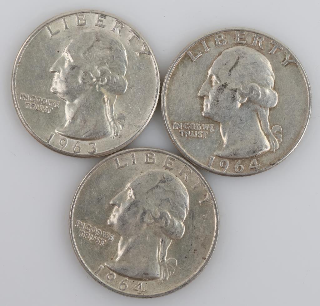 1963 & 1964 US Silver Quarters, 3 Pieces