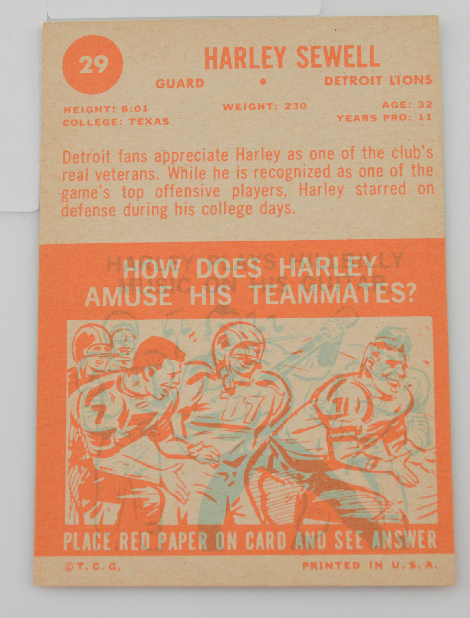 1963 Harley Sewell Detroit Lions Topps #29 Football Card