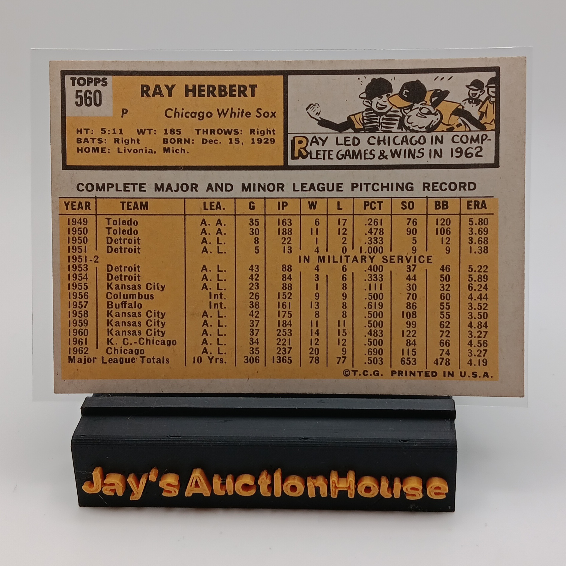 1963 Topps #560 Ray Herbert Sports Card