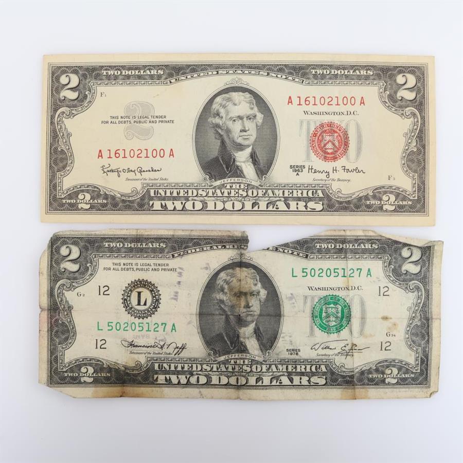 1963-A US $2 Note & 1978 US $2 Federal Reserve Note, 2 Pieces