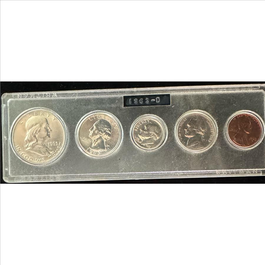 1963-D SILVER 5 COIN SET UNCIRCULATED BRIGHT LUSTER IN THE SLAB