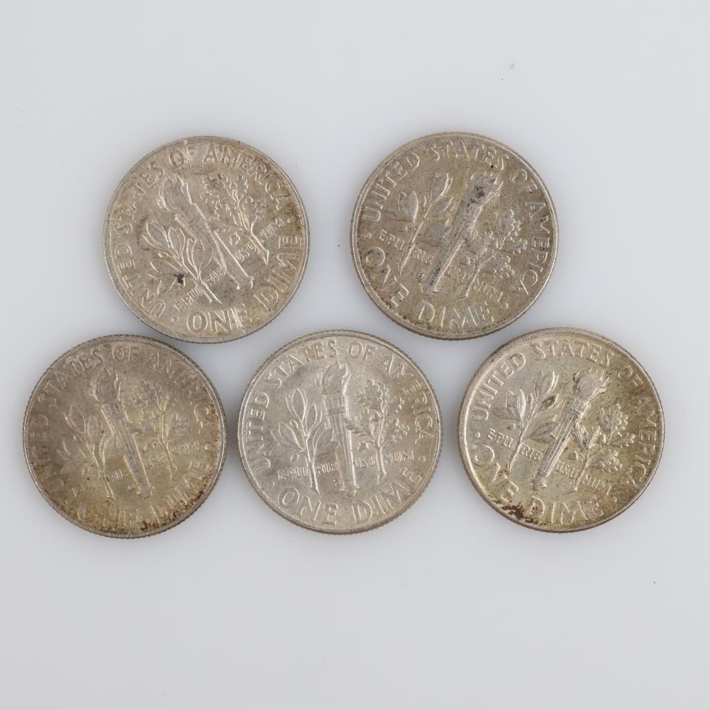 1964 & 1964D US Silver Roosevelt Dime, 5 Pieces