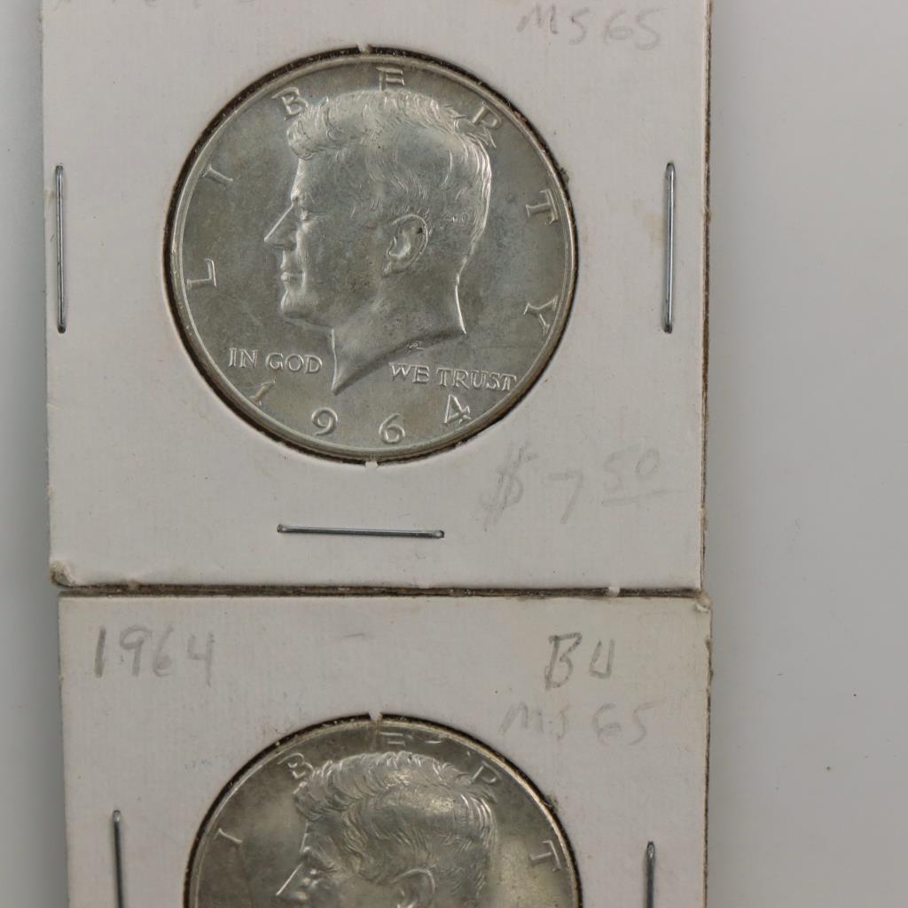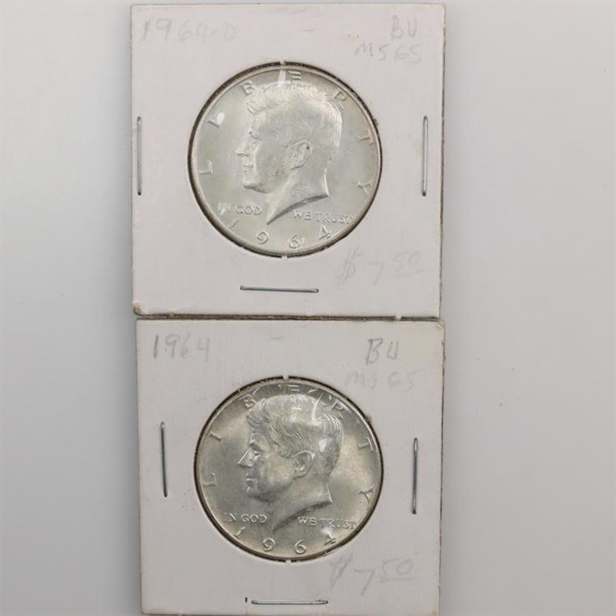 1964 And 1964-D Kennedy Silver Half Dollar, 2 Pieces