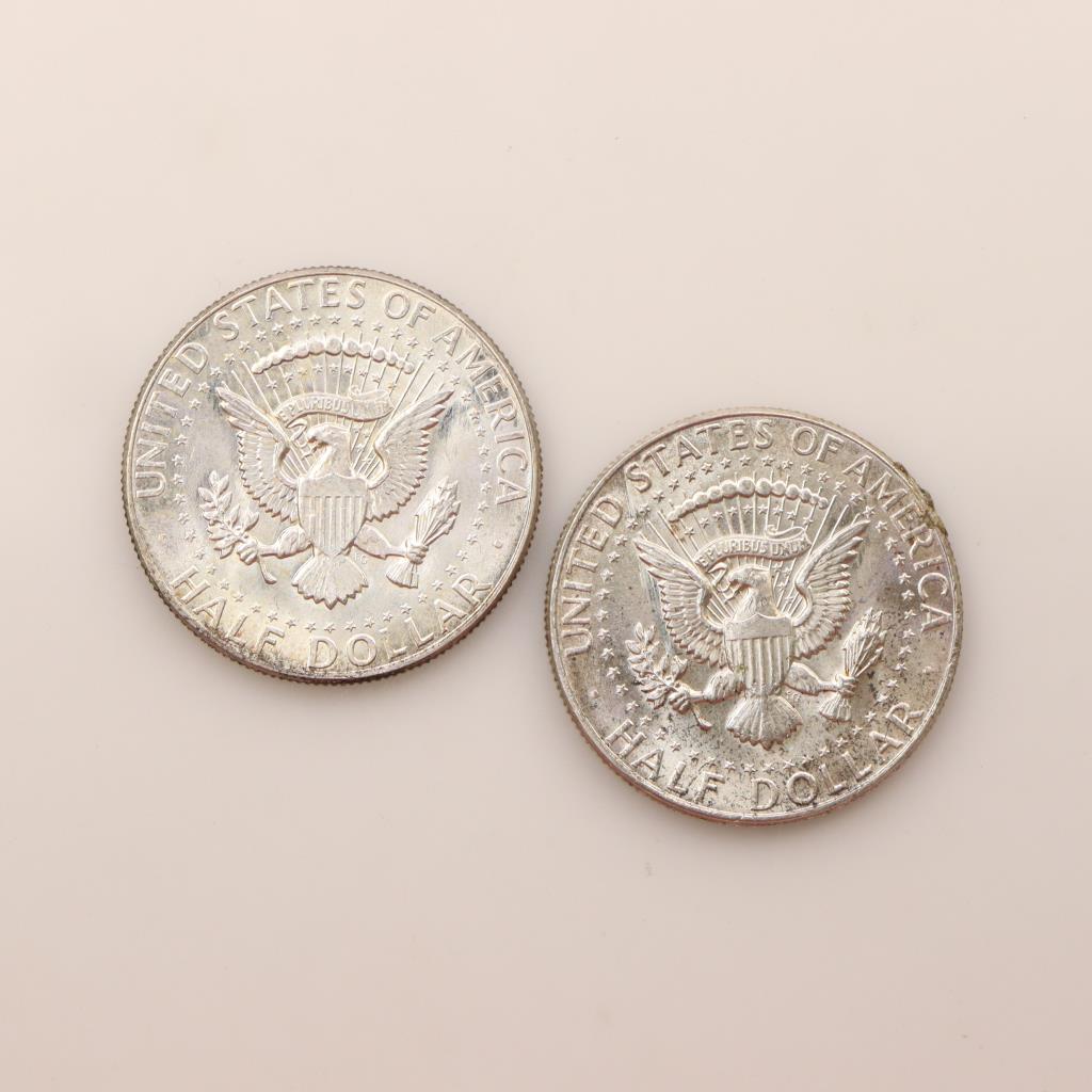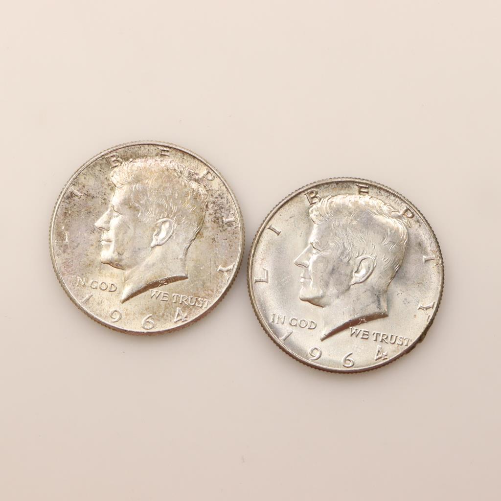 1964 Kennedy Silver Half Dollar, 2 Pieces
