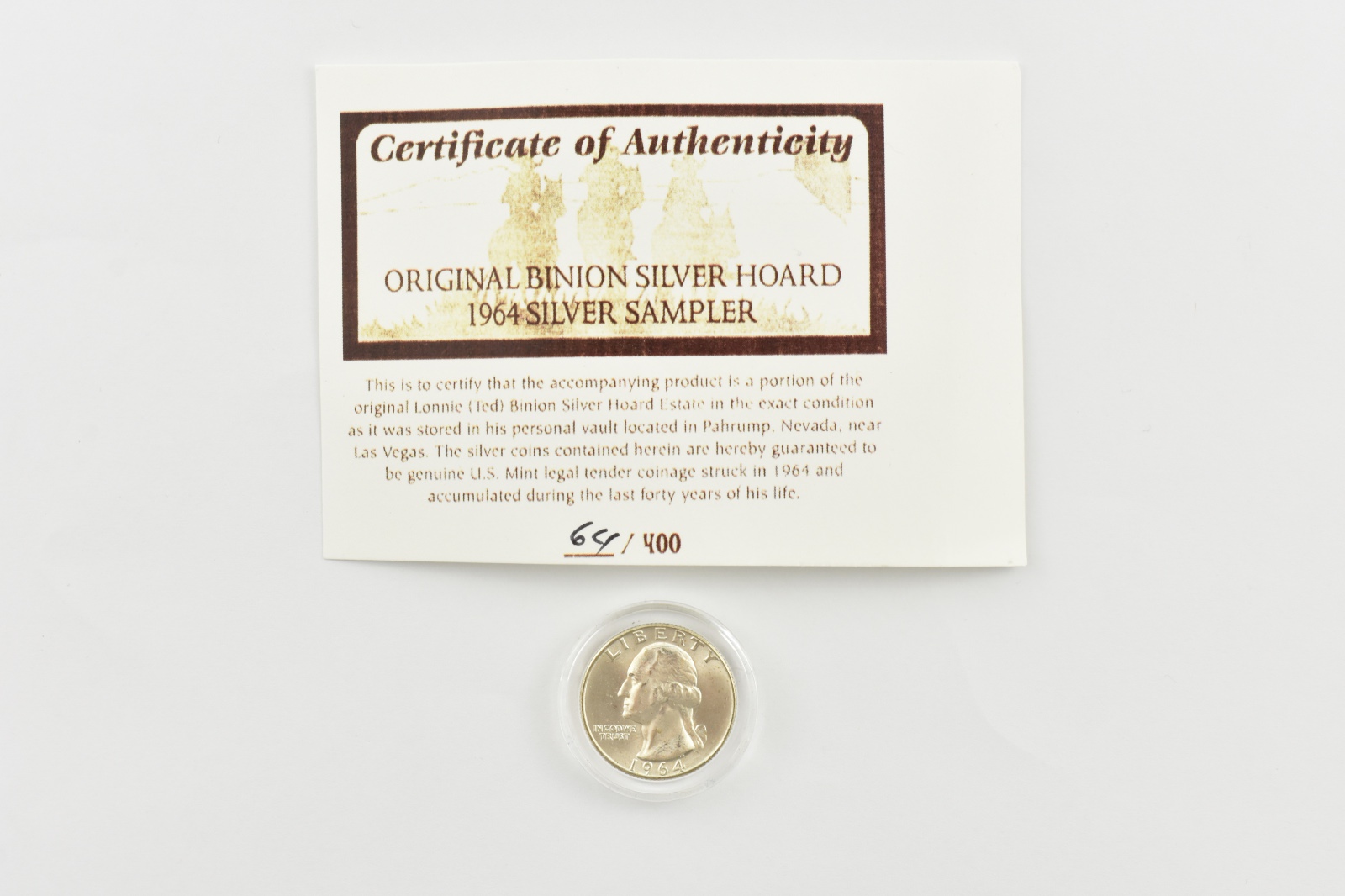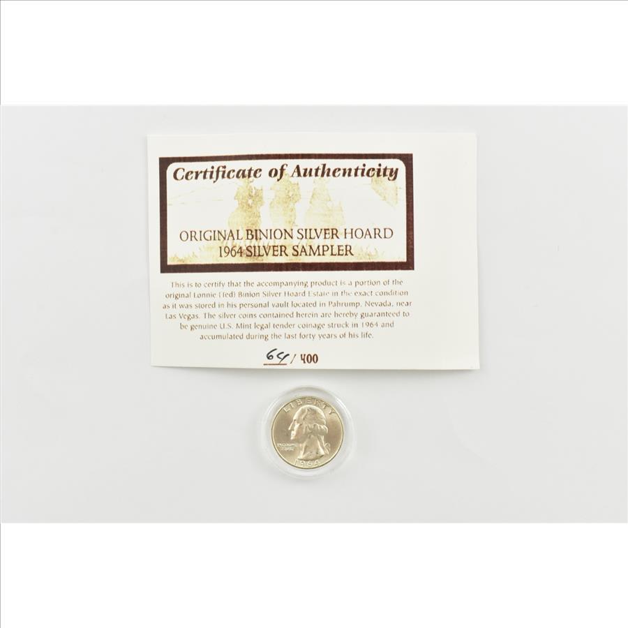 1964-D Washington Quarter Original Binion Silver Hoard Sampler 64/400 COA