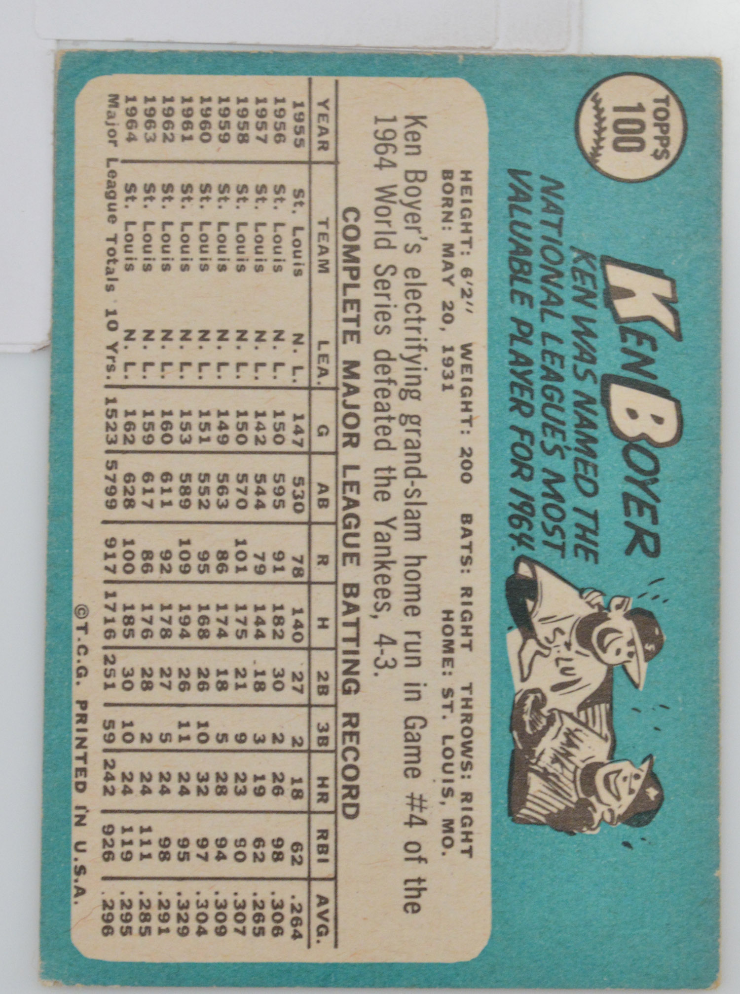 1965 Ken Boyer Cardinals Topps #100