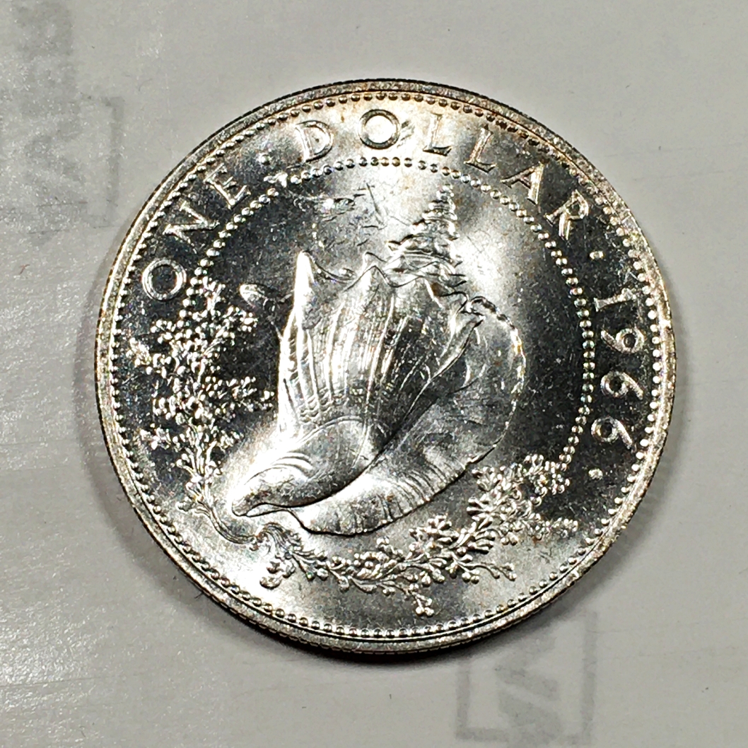 1966 British Commonwealth-Bahamian Silver $1 w/ Conch Shell Design!