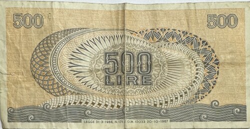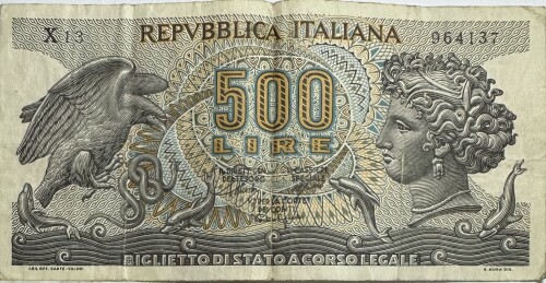 1966 Italy Repvbblica Italiana 500 Lire Banknote