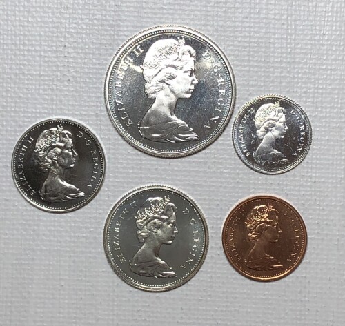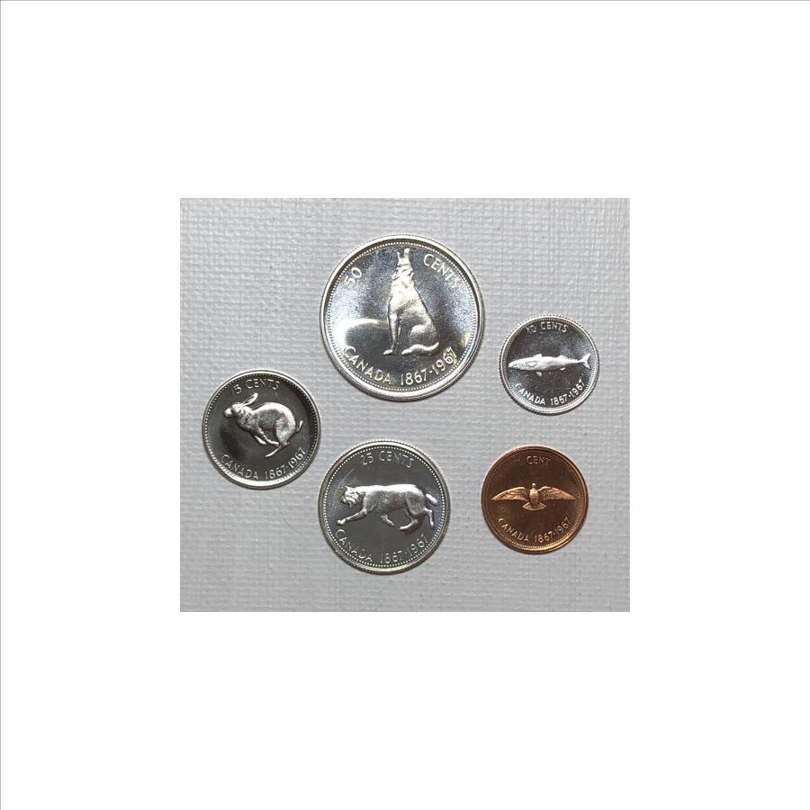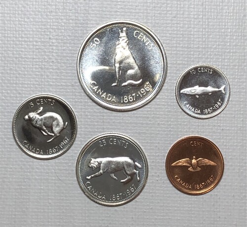 1967 Canada 5 Uncirculated Coins Commemorating 100th Anniversary of Canada - Includes 3 Silver Coins