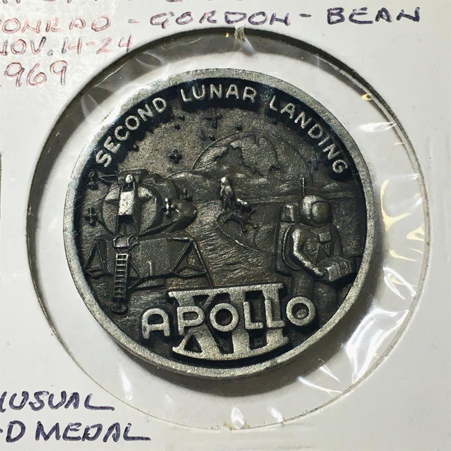 1969 High Relief Apollo XII Medallion*1.25" Diameter Metal*Second Lunar Landing*High Grade