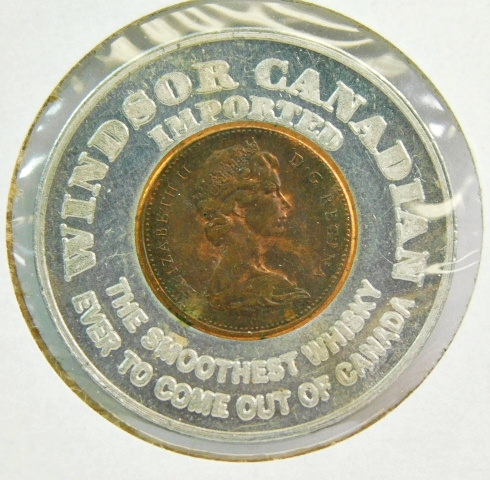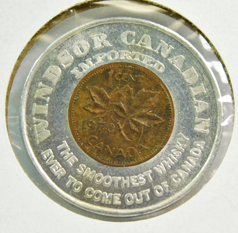 1970 Canada Encased Cent - Windsor Canadian Whisky - The Smoothest Whiskey to Ever Come Out of Canada