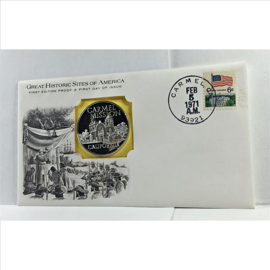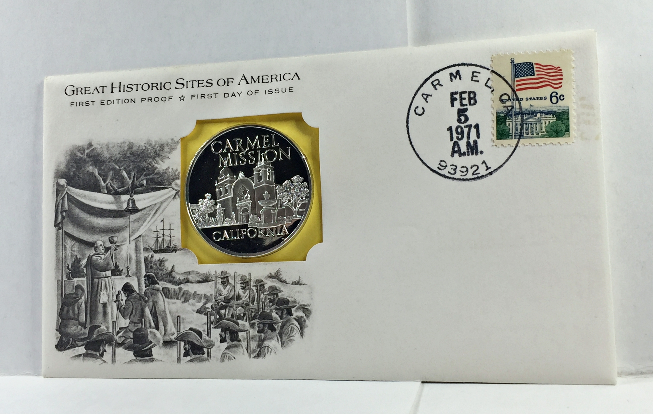 1971 Sterling Silver First Edition Proof Commemorative*First Day of Issue*FDC w/ Stamp*Carmel Mission, CA