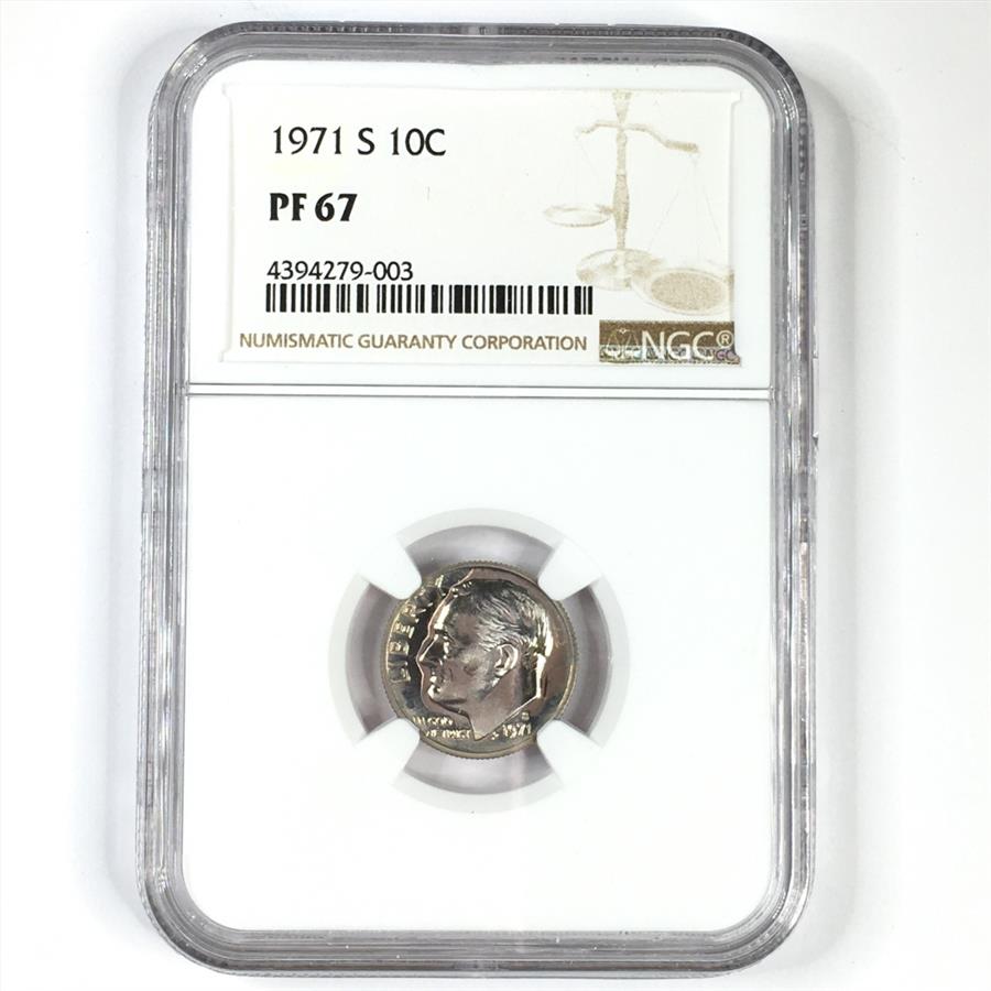 1971-S Proof Roosevelt Dime*Graded PF67 by NGC