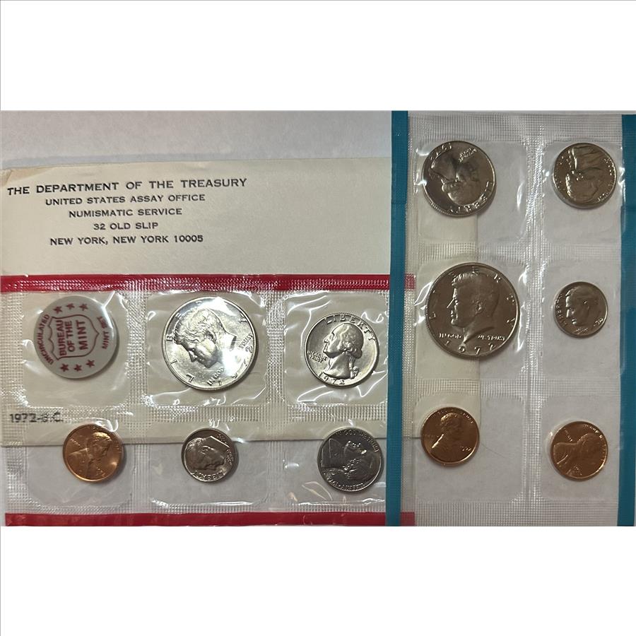 >1972 (P&D) U.S. Mint Uncirculated Coin Set-11 Coins Including (2) Kennedy Half Dollars in Original Mint Packaging w/Mint Token