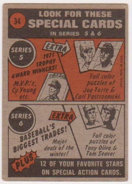 This is an authentic 1972 Topps #34 card.  It is in approximately VG condition.  It has a fair amount of corner/surface wear and is off center, but overall still displays decently in a holder.  This is an original 53 year old card of this former star player and manager.