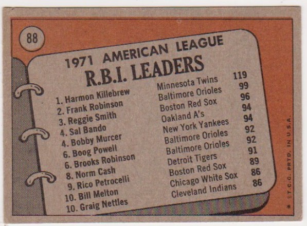 1972 Topps Harmon Killebrew/Frank Robinson/Reggie Smith #88 Card