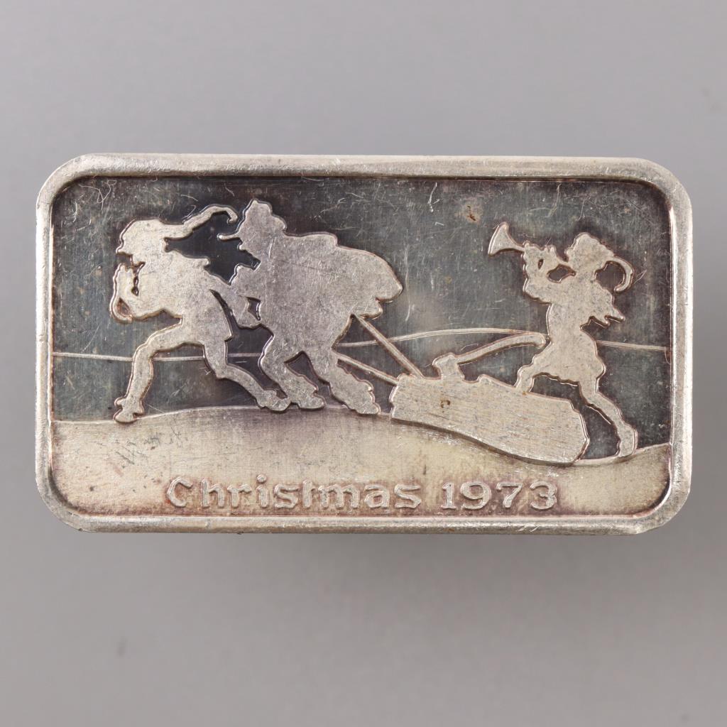1973 Fine Silver 1 Oz Christmas Bar
