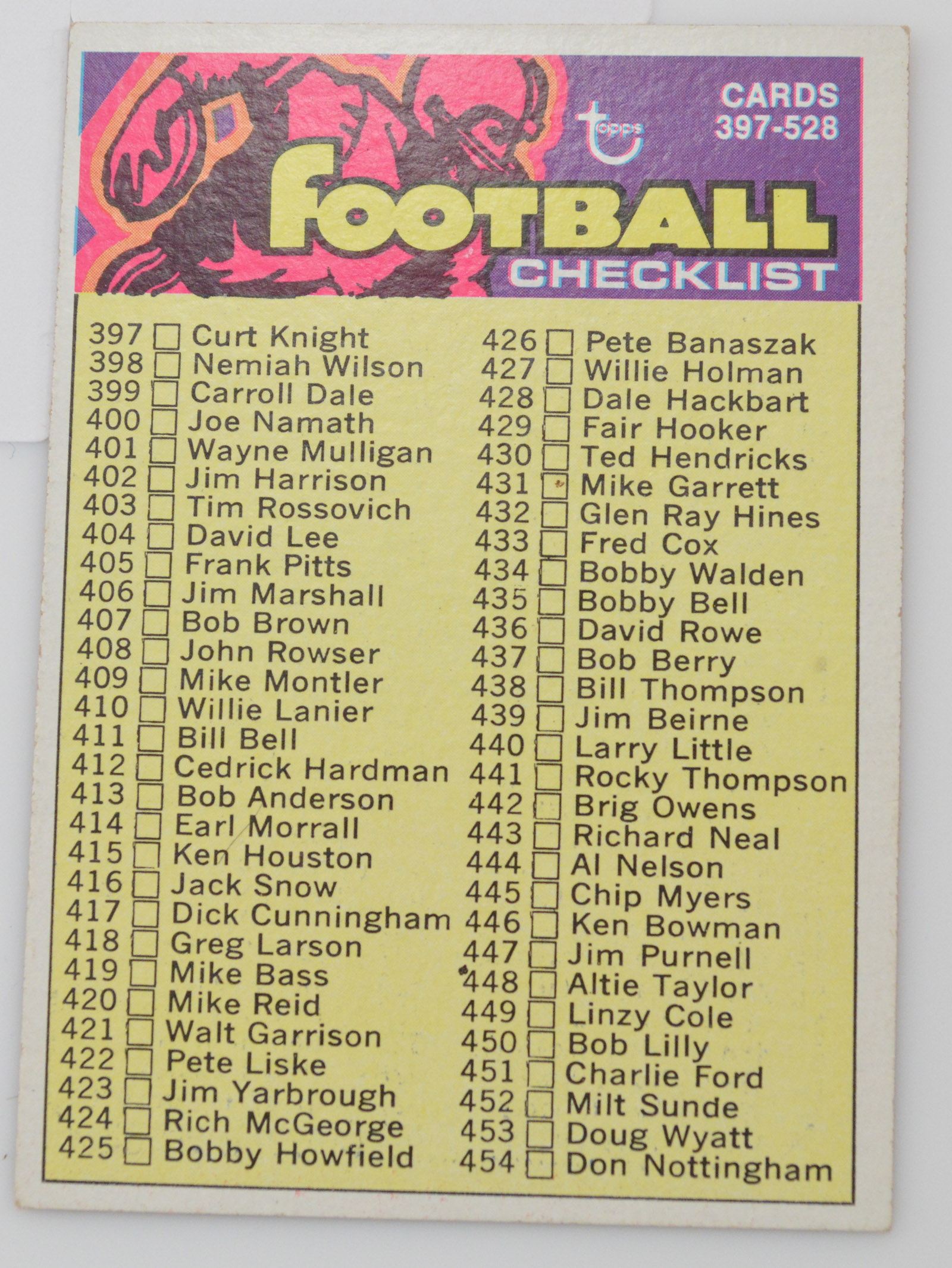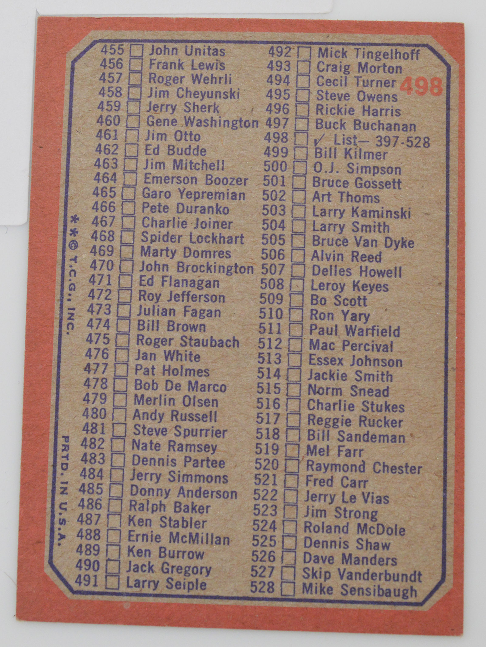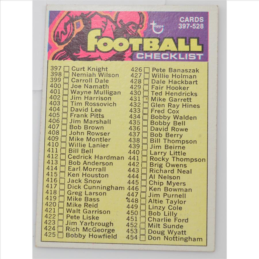 1973 Football Checklist Cards 397-528 Topps #498