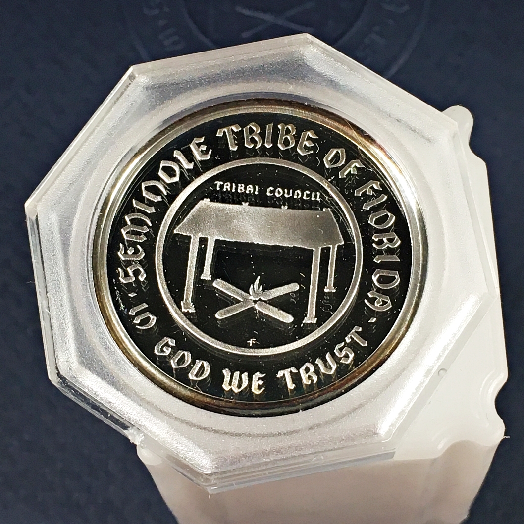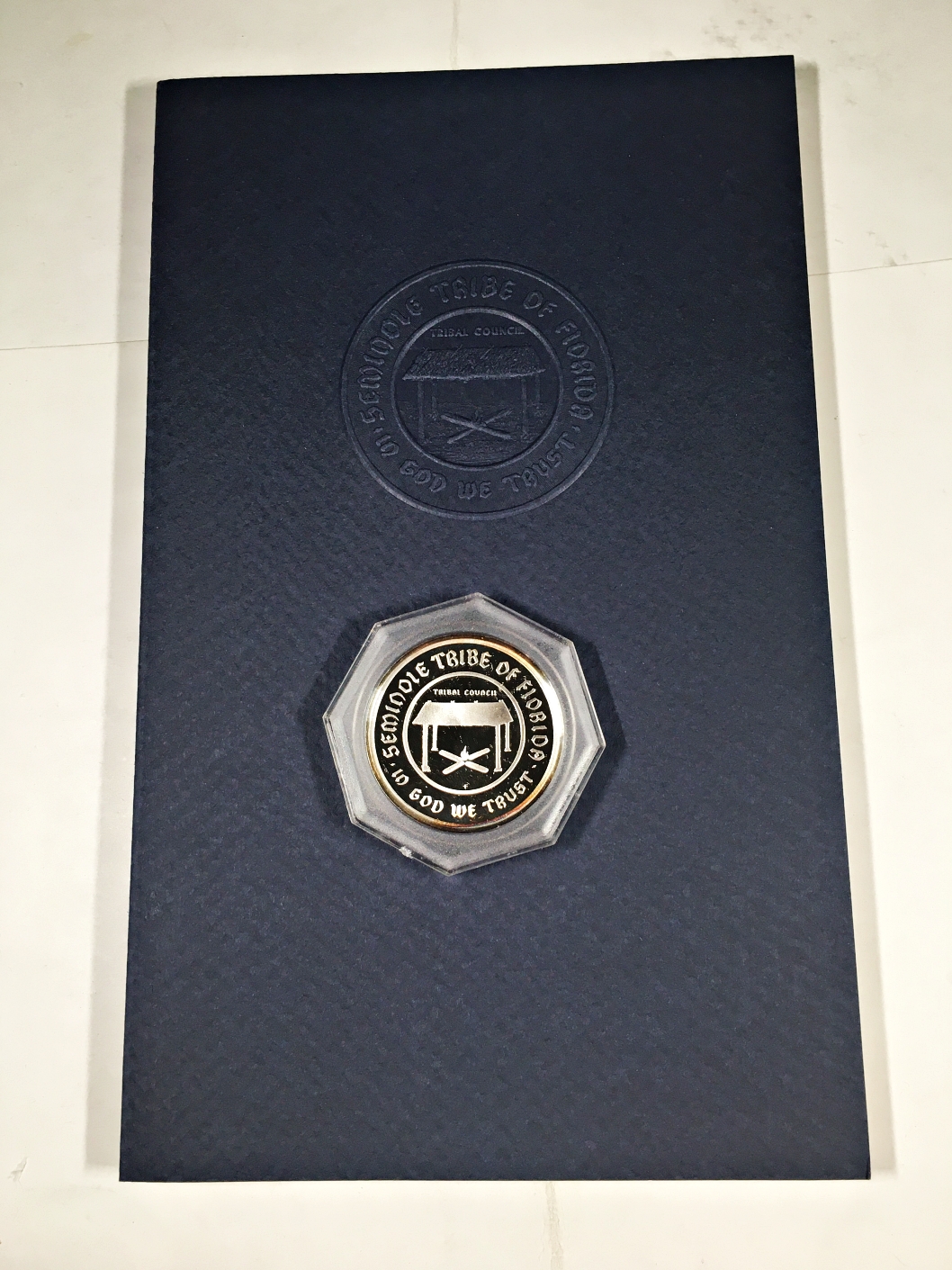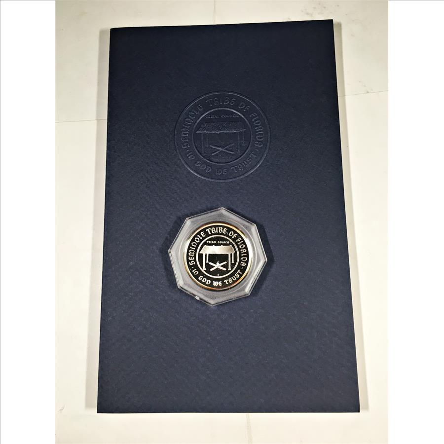 1973 The Florida Seminole People's History, .80oz .999 Silver Medallion and Signature of the Tribal Chairman