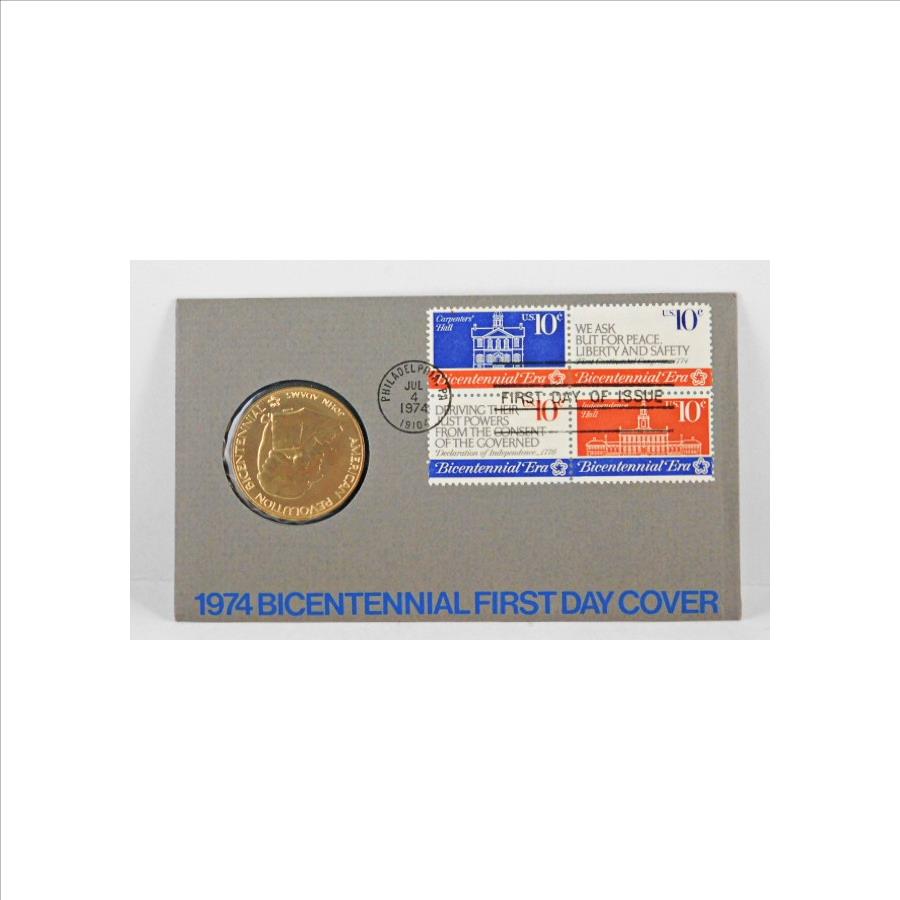 1974 Revolution Bicentennial First Day Cover*With Bronze Medal and Four 10c Stamps*Philadelphia Postmark