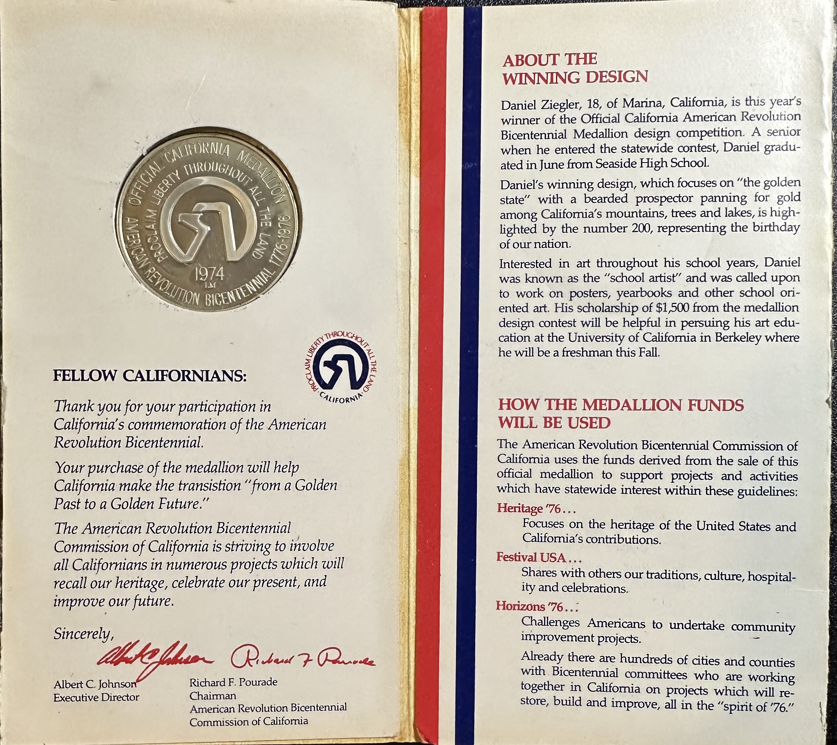>1974 Sterling Silver American Revolution Bicentennial - California Commemorative Medallion - Gold Prospector Design!