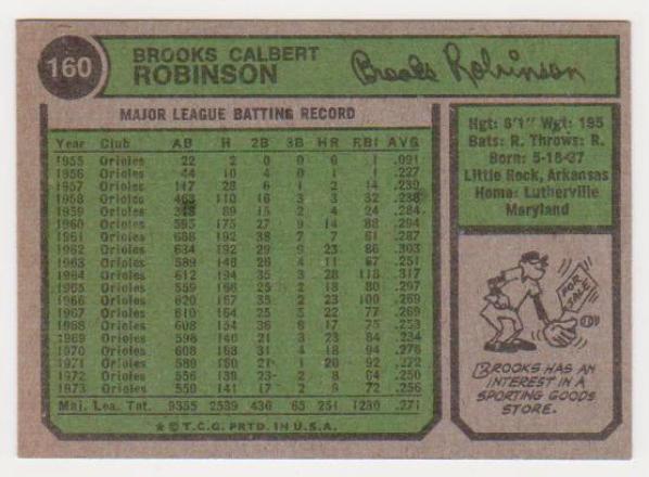 1974 Topps Brooks Robinson #160 Card - HOF'er
