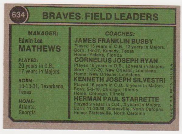 1974 Topps Eddie Mathews #634 Card - HOF'er