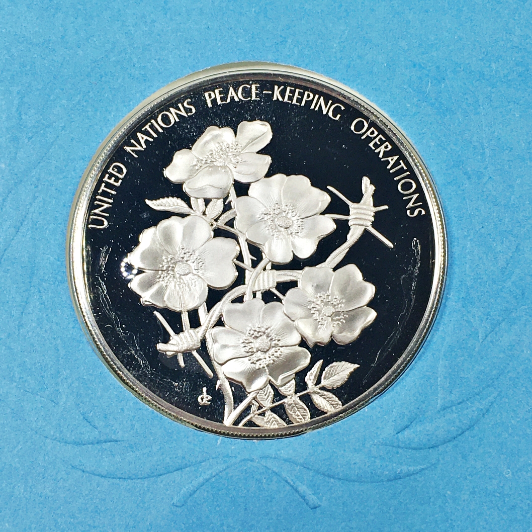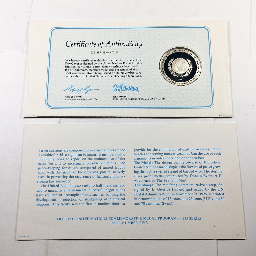 1975 Sterling Silver First Edition Proof of United Nations Peace-Keeping Commemorative Medal*With Original Stamp on FDC
